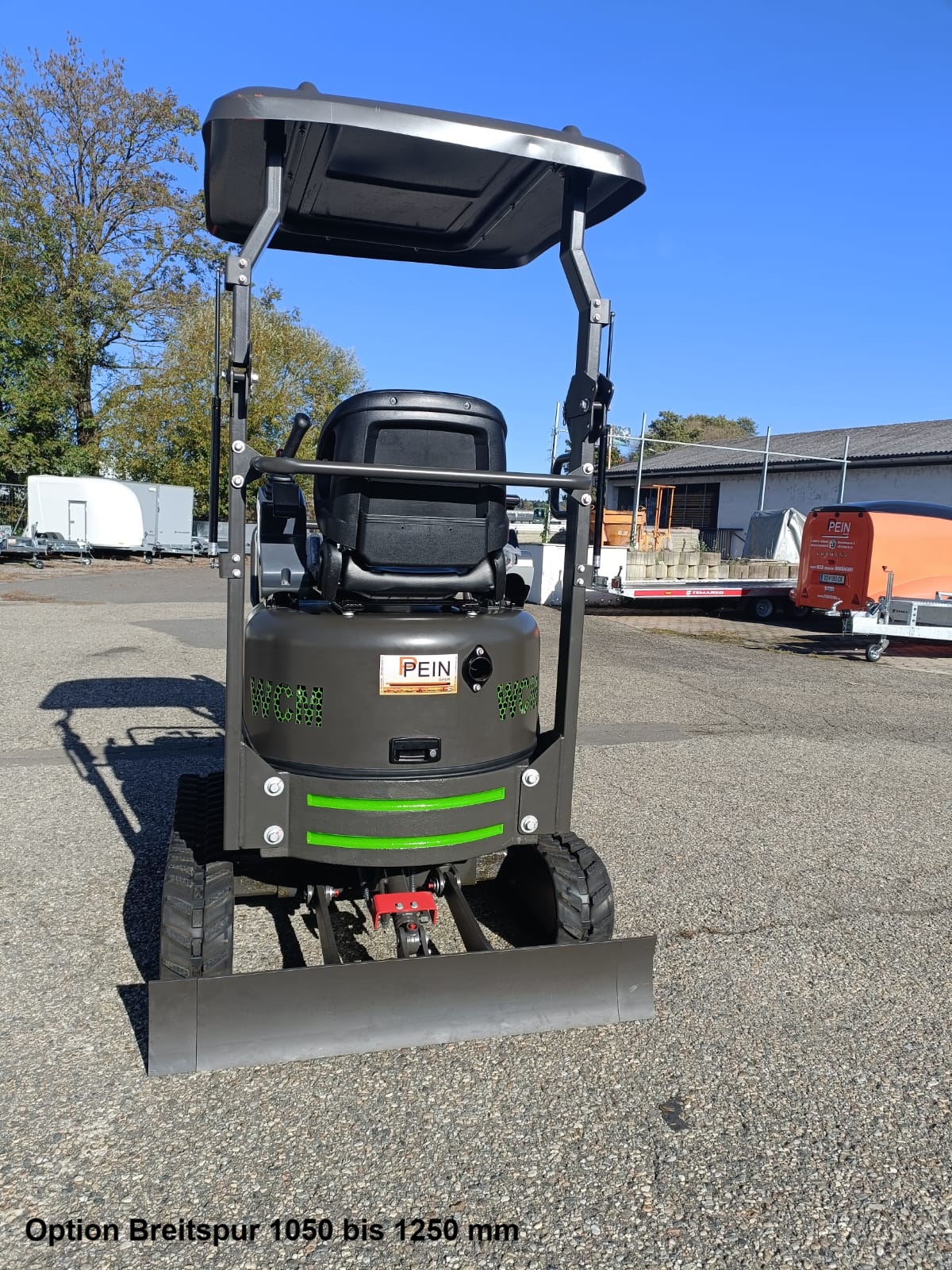 Type: CTX 8010 PRO mit 2 Fahr Geschwindigkeiten Motor: Diesel Yanmar 3 Zylinder Wassergekühlt Baujahr: NEU Motor: Euro 5 Motorleistung: 15,5 PS bei 2500 U/min Steuerung: Servo - Joystick Hydraulikdruck: 20 MPa Eigengewicht: ca.1300 kg Fahrwerk verstellbar: Standard: 850 - 1050 mm Breitspur (optional, Aufpreis): 1050 - 1250 mm Abmessungen Standard hxbxl: ca 2150 x 950 x 1600 mm Max. Grabtiefe: ca 1745 mm Max. Höhe: ca 1919 mm Zubehör Aktionspaket: Schaufel 300 mm Daumengreifer Hydraulisch Schnellkuppler Werkzeugkoffer Optional erhältliches Zubehör: Fahrwerk Breitspur Greifer Greifer mit Rotor Rechen Aufreißzahn Hydraulikbohrer Antriebseinheit Ersatzbohrer 200 mm Ersatzbohrer 140 mm Ersatzbohrer 300 mm Hydraulischer Abbruchhammer Schaufel 200 mm Schaufel 600 mm Schaufel 800 mm Schaufel 1000 mm Böschungslöffel 800 mm Böschungslöffel 1000 mm Holzspalter Anschlussgarnitur Fettpresse