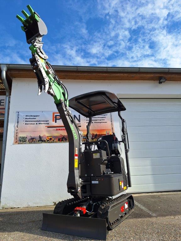 Minibagger PRO 1,27 t inkl. Schaufel 300 mm, Hydr. Daumengreifer und Schnellkuppler