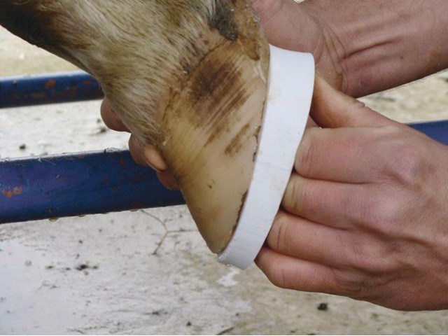 Der spezielle, abgeschrägte Block "Wedgy" entspricht den neuesten Erkenntnissen der Klauenruhigstellung um Sehnen und Bänder zu entlasten und eine korrekte Abnutzung v. a. auf rauhem Untergrund zu ermöglichen.