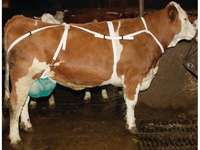 • die Brust- und Nackenbegurtung gibt diesem Zitzenschutz zusätzlichen Sitz und Halt an der Kuh