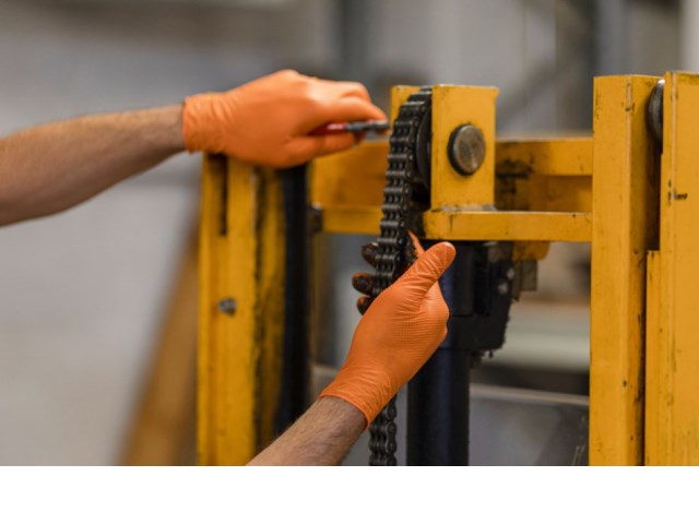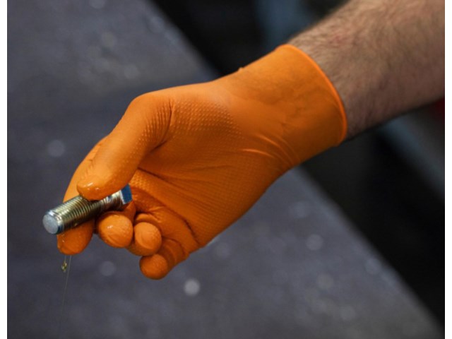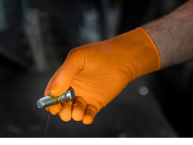 • Einmalhandschuhe aus abriebfestem, öl- und chemikalienbeständigem Nitril