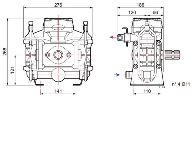 • Lässt sich mit Kupplungen und riemengetriebenen Elektromotoren mit der Vollkeilwellenanordnung (30 mm) verbinden. (Ersatzteil nicht im Lieferumfang enthalten!)