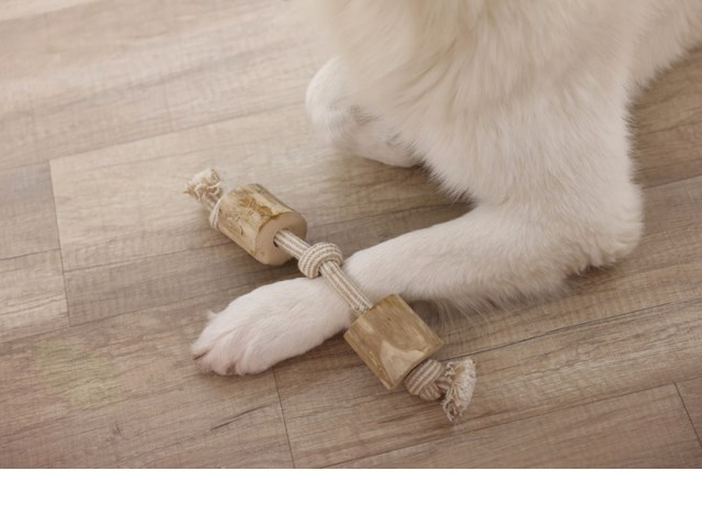 * natürliches Hundespielzeug aus Kaffeeholz, Baumwolle und Jute