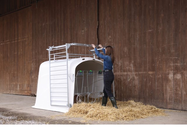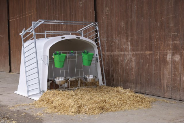 * die Hütte bietet Platz für drei Kälber bis zu 150 kg
