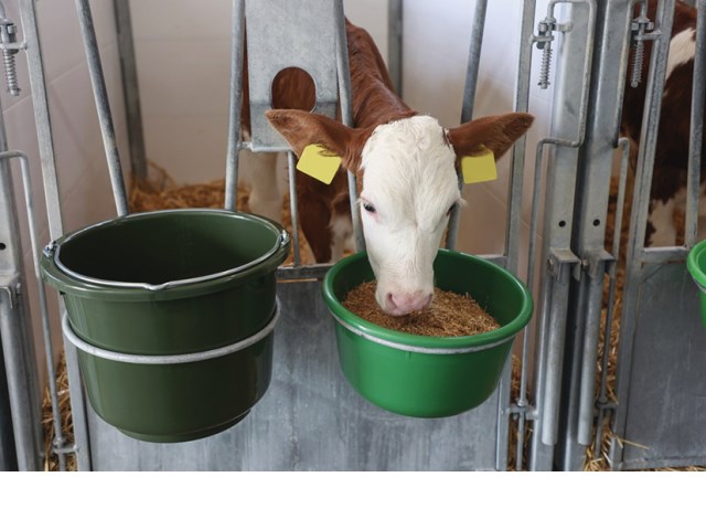 Stabile Futterschale aus schlagzähem Kunststoff, universell einsetzbar, optional mit Deckel, einfach zu reinigen – ideal für Pferde, Kälber oder Schafe.
