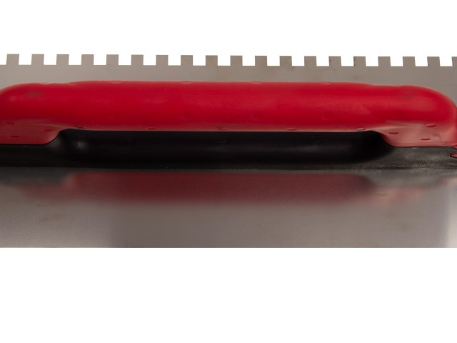 Blatt aus federhartem Edelstahl, 2-seitig gezahnt, rostfrei, ergonomischer 2K-Griff in rot.