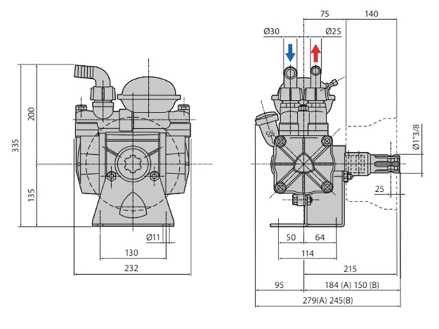 B (Breite) 232 mm